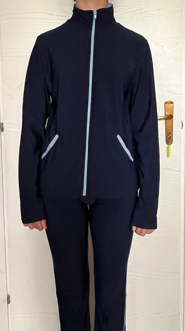 Realizzata in materiale tecnico felpato, traspirante ed elasticizzato, questa tuta accompagna ogni tuo movimento con comfort ed eleganza, composta da Giacca con zip e tasche, pantalone a sigaretta