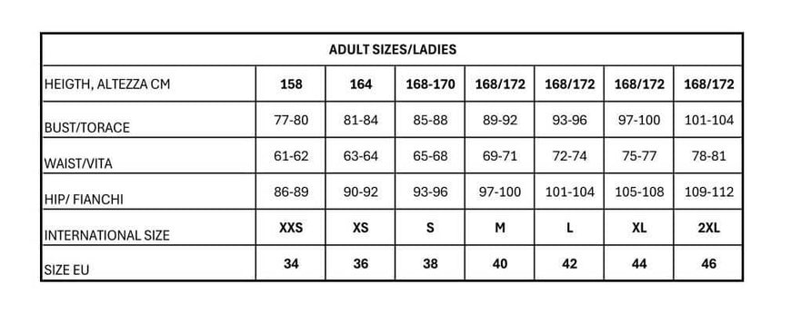 Presenta un elegante arriccio sul davanti che valorizza la silhouette, mentre lo scollo a V sul retro, arricchito da un motivo in rete, aggiunge un tocco di stile e traspirabilità. Le spalline regolabili permettono una vestibilità personalizzata, rendendo questo body adatto a tutte le allieve dell'Accademia.