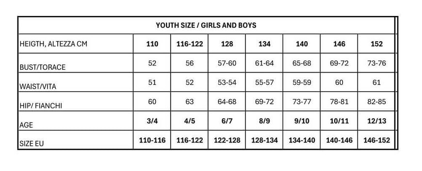 La spalla larga e la scollatura posteriore assicurano una vestibilità ottimale, ideale per le allieve dei corsi 4, 5, 6, 7 e 8, sia mattutini che pomeridiani.