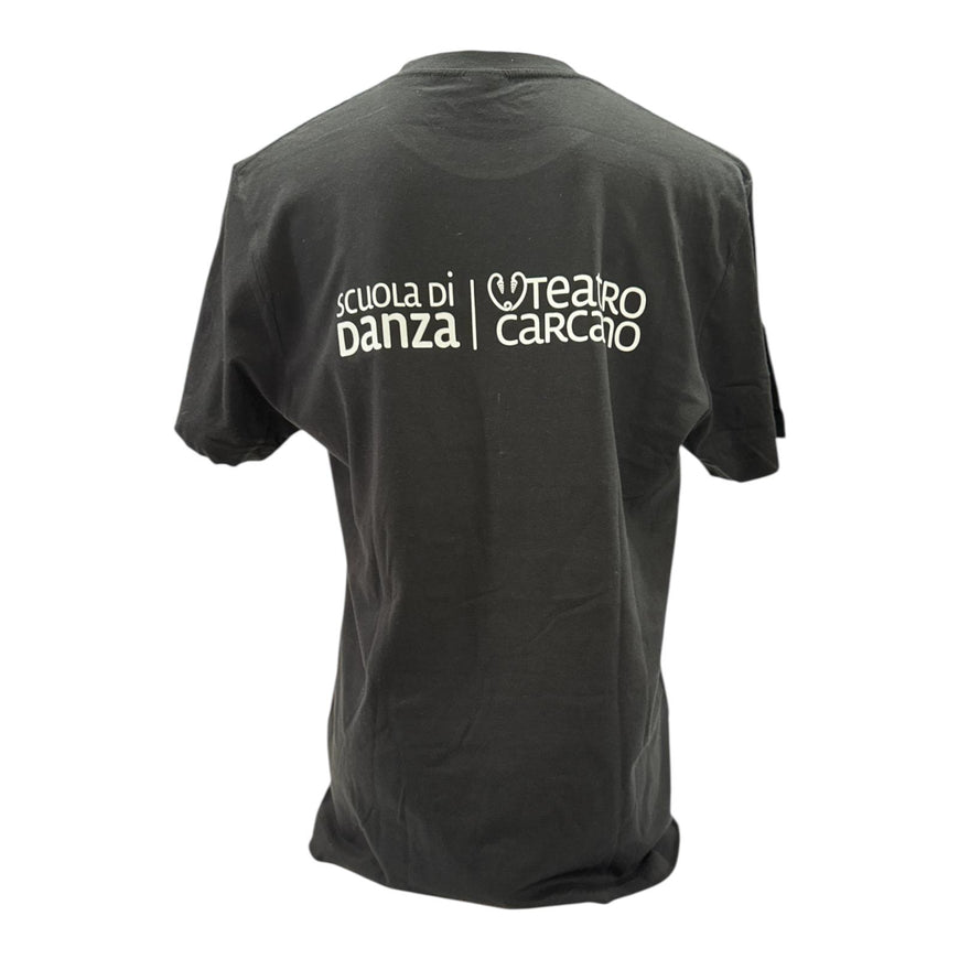 Realizzata in cotone nero di alta qualità, questa t-shirt presenta un logo elegante stampato sul davanti e sul retro, pensata per i corsi di danza modern e contemporaneo.